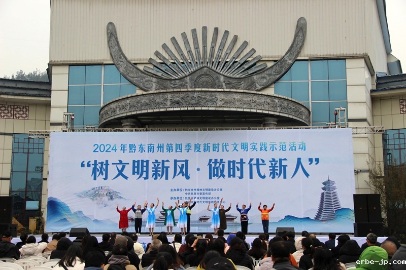 “同唱道德歌,文明向前进,和谐社会中,争当好公民……”12月20日下午,嘹亮的歌声在凯里市苗侗风情园会展中心广场上空回荡,拉开了2024年黔东南州第四季度新时代文明实践示范活动的序幕。此次活动的主题为“树文明新风·做时代新人”。