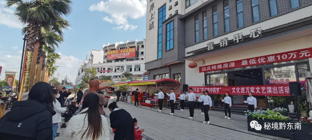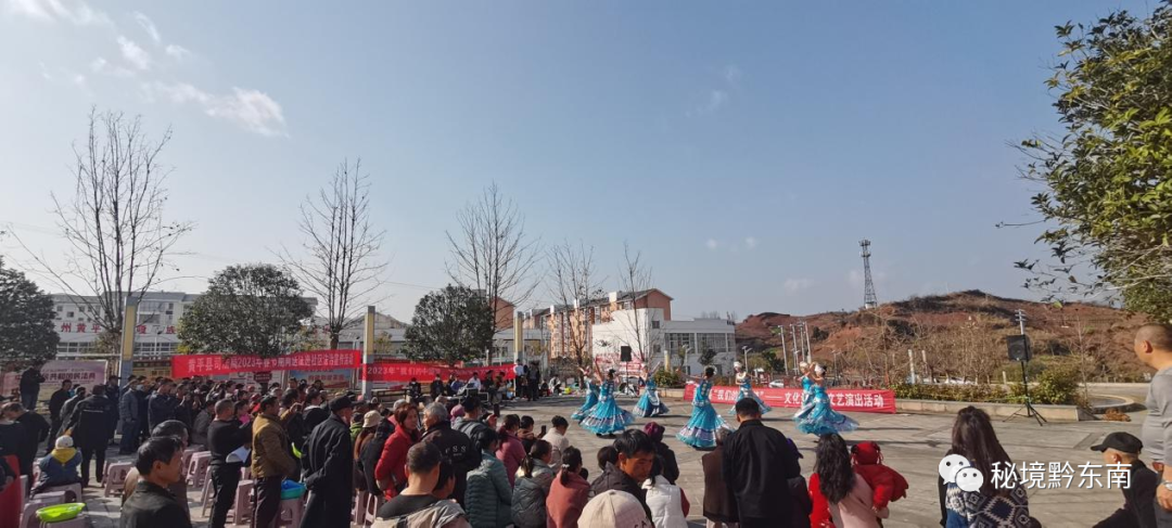 十大(呀)就是好,金秋十月传喜报......”旋转的舞步,嘹亮的歌声,伴着新年的清风翩翩而来。近日由黄平县文体广电旅游局组织的黄平县学习贯彻党的二十大精神暨2023年“我们的中国梦”—文化进万家(戏曲进乡村)文化惠民演出活动,深入到全县各地作文艺宣讲演出6场次,为基层广大党员干部群众带去一场场鼓舞人心、催人奋进的精神盛宴,引导大家用二十大精神统一思想,凝聚力量。营造了喜庆祥和的节日氛围,为广大群众及时地送上丰盛的“文化新年货”。