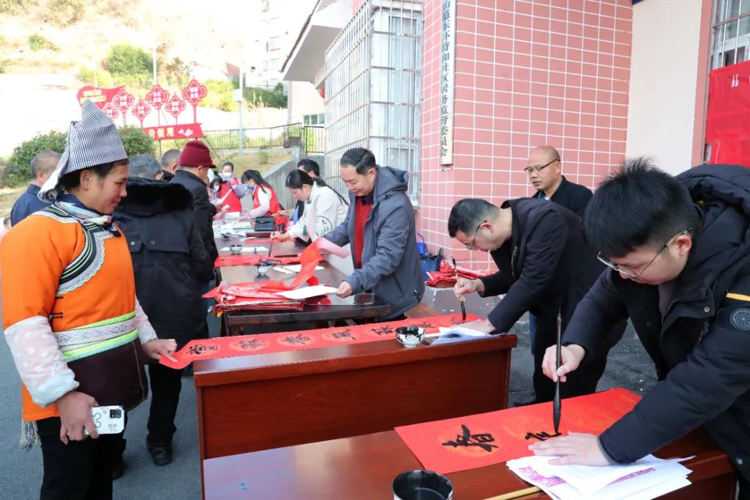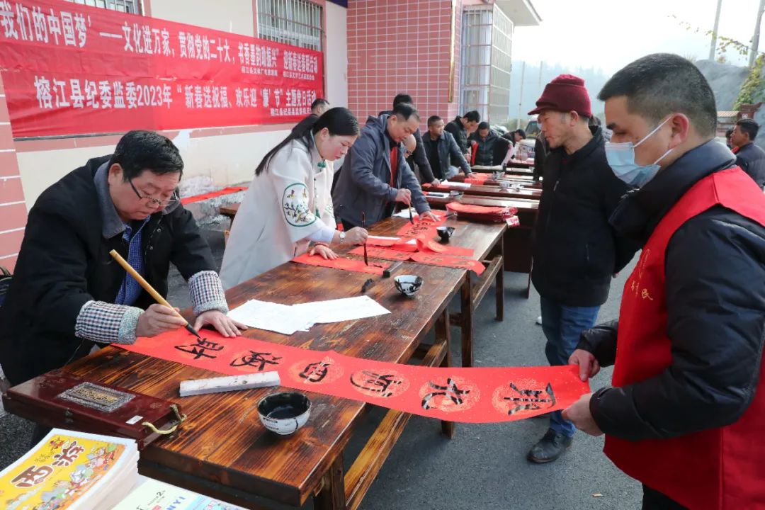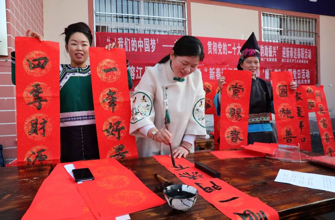 春节将至,为大力宣传贯彻落实党的二十大精神,弘扬传统文化及社会主义核心价值观。近日,榕江县新时代文明实践中心、榕江县文体广电旅游局和榕江县文学艺术家联合会组织当地书法爱好者走进社区、乡村开展迎新春送春联活动。营造“书香榕江”“清风榕江”浓厚氛围,促进精神文明建设,构建美丽、和谐、文明、清廉家园,营造喜庆祥和、清正廉洁的节日氛围,通过开展“我们的中国梦”文化进万家活动,以形式多样、内容丰富、线上线下相结合的文化文艺活动,传播正能量,丰富人民群众节日文化生活,凝聚奋进新时代新征程的强大精神力量,让人民群众欢度幸福祥和的春节。(李长华)