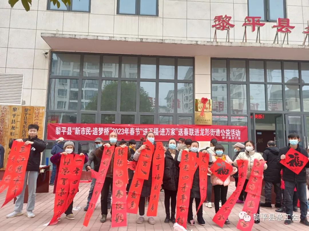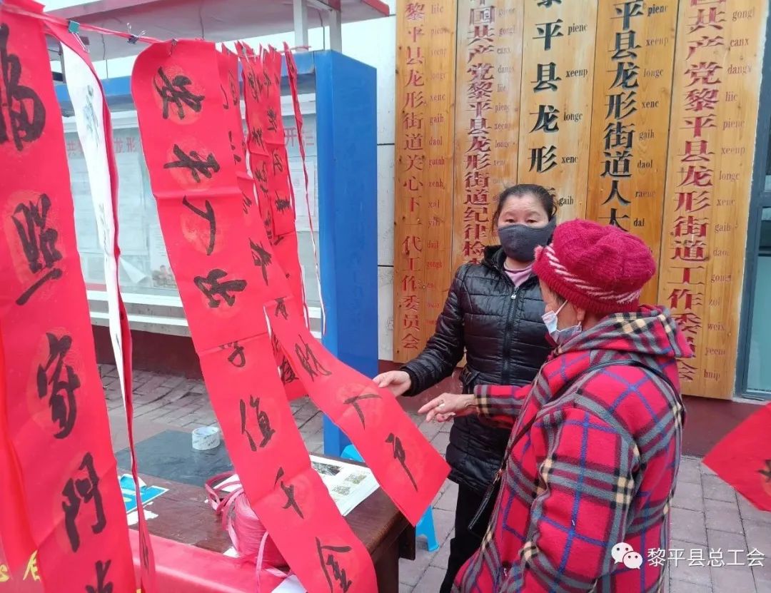 在龙形街道活动现场,书法家们泼墨挥毫,免费为社区群众书写春联。一幅幅歌颂美好生活、寓意吉祥的大红春联和“福”字让群众爱不释手。