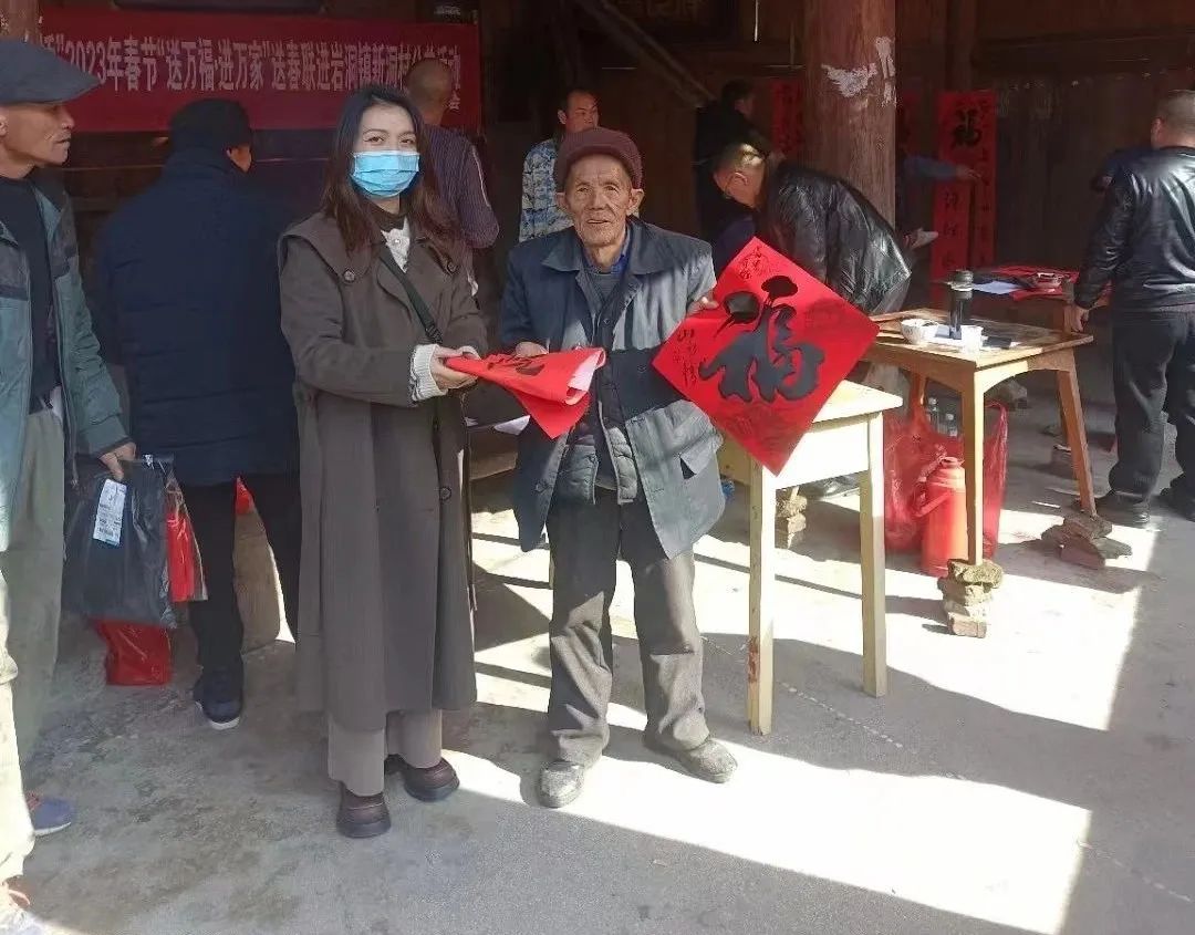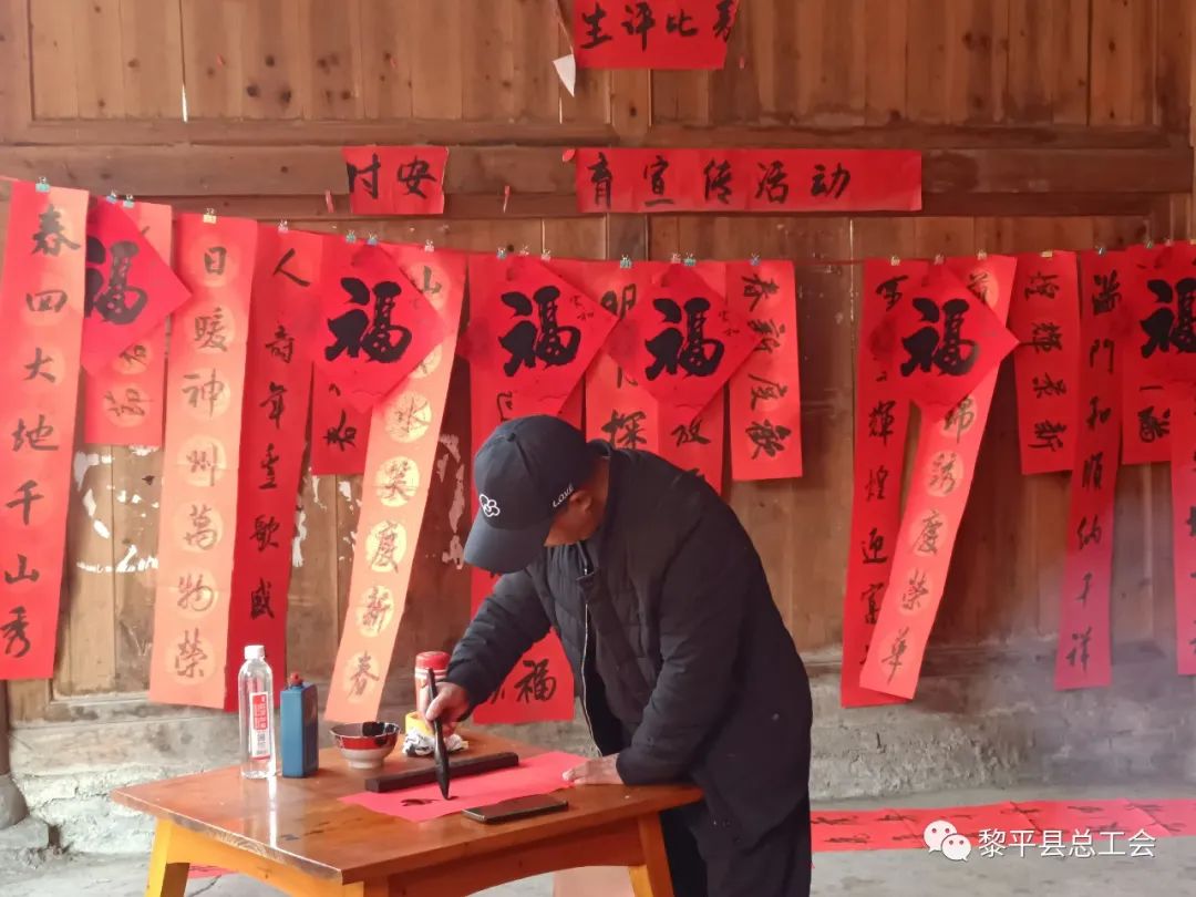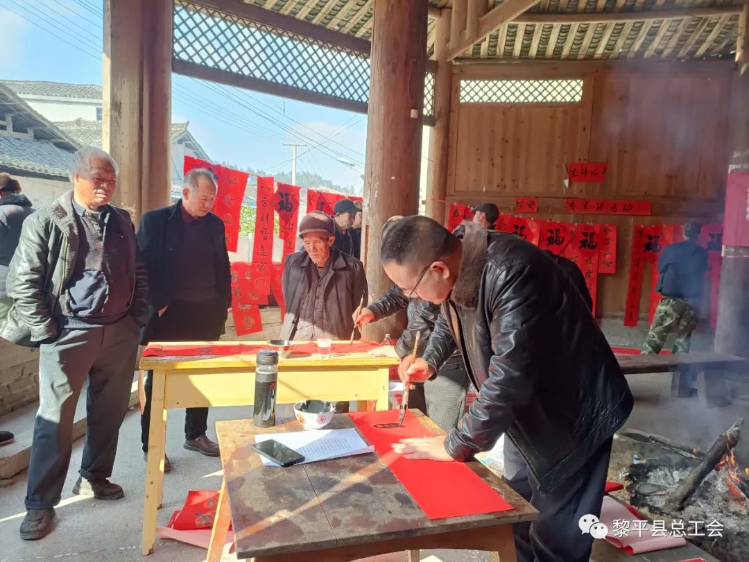 春节临近,为丰富群众节日期间的文化生活,营造喜庆、健康、和谐的节日氛围。1月5日至6日,黎平县总工会、县书法协会深入龙形街道安置点、新洞村开展“送万福·进万家”书法公益活动,为百姓送去浓浓的节日祝福。