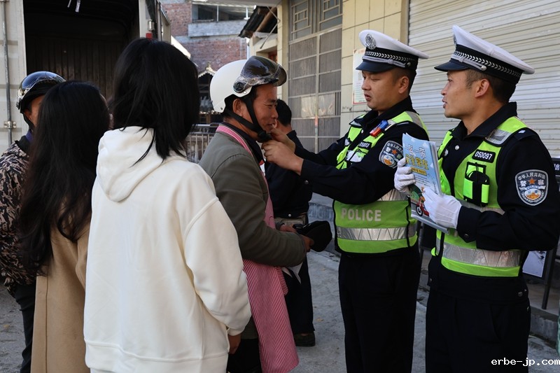 近日,三穗县公安局交警大队组织民辅警走进良上、瓦寨等乡镇开展“美丽乡村行”交通安全巡回宣讲活动,民辅警通过面对面宣讲、发放宣传材料等形式,重点针对“一老一小”“一盔一带”等方面交通安全知识,向群众宣传相关交通安全法律法规,并现场教群众如何正确佩戴安全头盔和规范使用安全带,进一步提升群众安全防范意识。 (唐光新 易世英 摄)