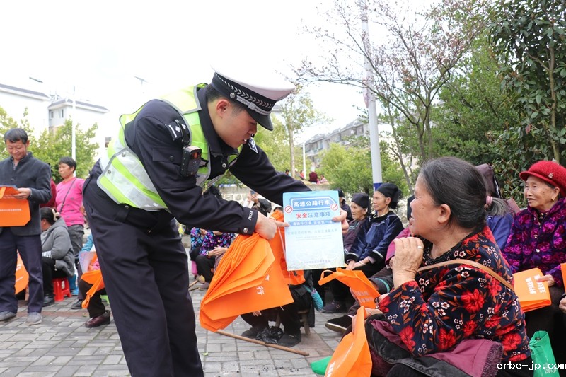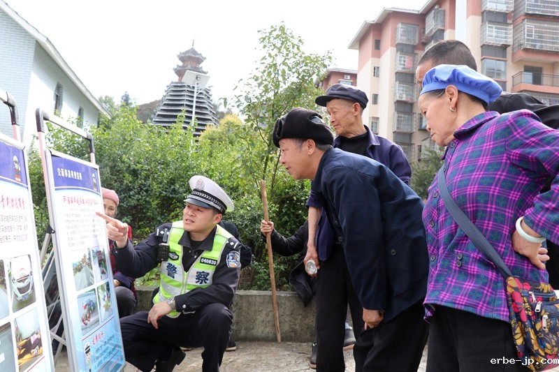 3月11日,黔东南州公安局交警支队高速六大队走进移民搬迁社区开展“春季突出道路交通违法行为集中整治行动”宣传活动,民辅警以社区居民、驾驶人等为重点群体,通过发放宣传资料、集中宣讲等形式,宣传讲解道路交通安全法规、交通违法行为的危害性、驾乘车辆一定要系好安全带等注意事项,切实提高群众的交通安全意识和文明出行意识。图为交警向社区居民讲解交通安全知识。(李克雨 摄)