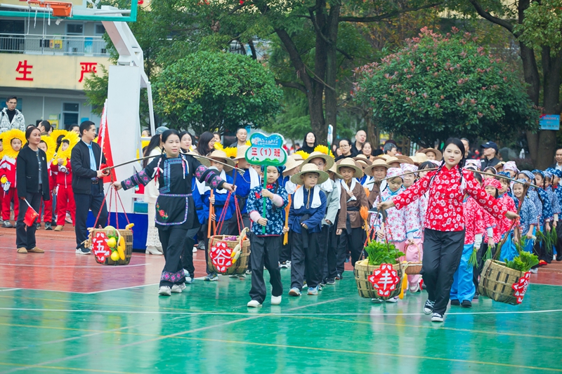 11月12至14日,黔东南州天柱县第三小学举行“五育并举绽华彩,阳光运动强体魄”为主题的第二十届冬季运动会。开幕式上,各班级方阵以创意十足的入场式惊艳亮相:低年级学生身着卡通服饰,以“动物运动会”为主题演绎活力;中年级班级融合传统文化元素,气势磅礴,武术表演刚劲有力;高年级方阵通过诗歌朗诵、情景剧等形式,展现出独特的创意思维。