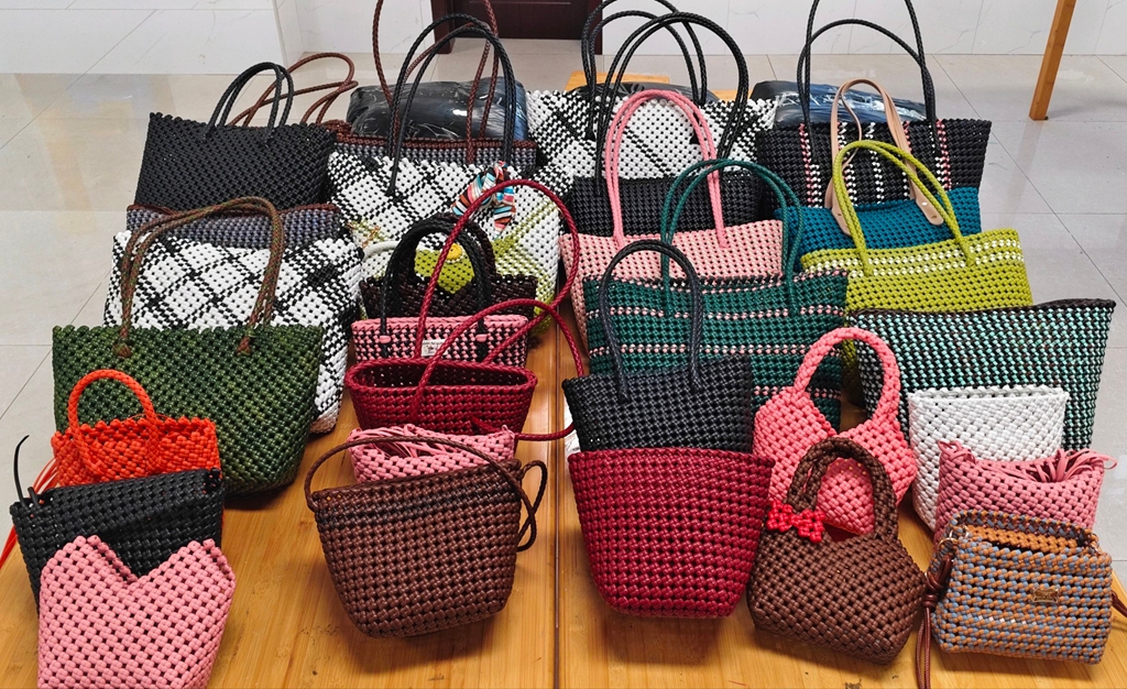 手工编织包的绒线在指尖打个转,就成了能装下橡皮和秘密的小口袋。
