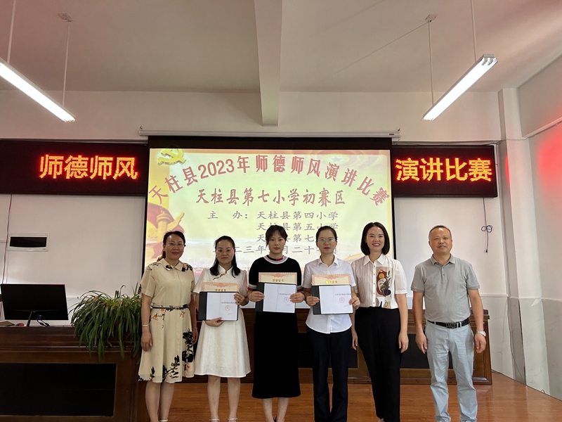 经过激烈的角逐,最终来自天柱县第七小学的曾继雪老师以98.26的高分勇夺桂冠,取得了代表三所学校参加天柱县教育系统2023年师德师风演讲比赛的资格。