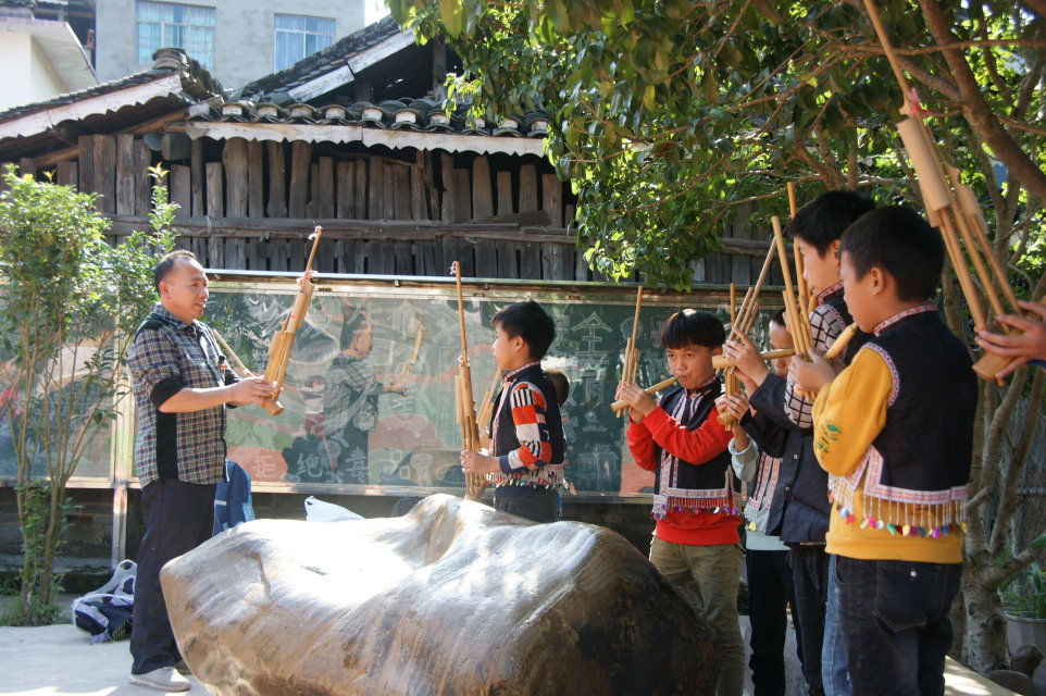 该中心小学利用课余时间开展的非遗文化侗族传统芦笙进校园活动,旨在把侗苗族的芦笙制作、吹奏舞蹈表演传承给学生,让更多的人来学习和传承我们中华民族的优秀传统文化。该校共有907名学生,其中侗苗族民族学生占98%。为更好地培育和促进新时代青少年的民族情感,营造保护、传承非遗文化侗苗芦笙舞的良好氛围,该校选任了精通芦笙舞的石健老师、邀请了龙额村“五老”人员石本荣指导传教学生吹奏芦笙舞蹈表演,让孩子们“零距离”接触、直观感受非遗技艺之美,丰富校园文化生活,弘扬和传承民族优秀传统文化,进一步铸牢了中华民族共同体意识。