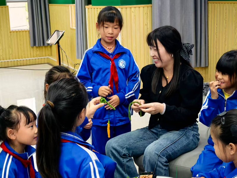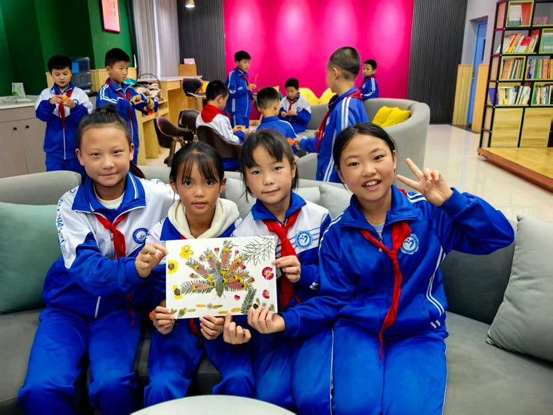 在学校领导、班主任及研支团帮助指导下,学生们用扭扭棒制作柿子、稻穗等丰收手作,或用树叶拼贴创意画,表达对丰收、自然和劳动的理解与敬意。南农公管学生同步开展扭扭棒DIY与中药植物创意手作,校地携手共庆丰收。