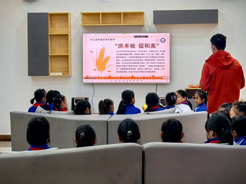 活动特邀南农公管学院土管专业志愿者,借助PPT讲解丰收节背景意义。志愿者以图片为引,带学生领略北国麦浪、江南稻香等丰收景象,感受农耕文化厚重与现代农业魅力,让学生懂得“一粥一饭,当思来之不易”。同时分享“土地规划魔法” 与土管专业 “规划超能力”,科普知识、开展国情教育,培育学生珍惜资源意识。