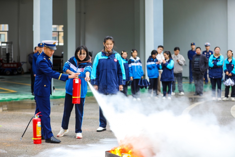 演练开始!广场上烈火熊熊,浓烟滚滚。消防指战员面对模拟火场,详细讲解火灾成因、防范措施及扑救逃生等知识,并指导学员们正确使用灭火器,亲身体验灭火流程。通过现场实操演练,学员进一步巩固了消防知识和灭火技能,在体验中深化了安全意识、提升了自救能力、锤炼了应急本领。“消防员叔叔详细讲解了消防器材的使用方法,我还亲手操作了灭火器!”黎平县第八中学学生吴宇薇兴奋地说,“这次活动不仅让我学到了实用技能,更深刻理解了消防安全的重要性。消防员叔叔无私奉献的精神,是我学习的榜样!”