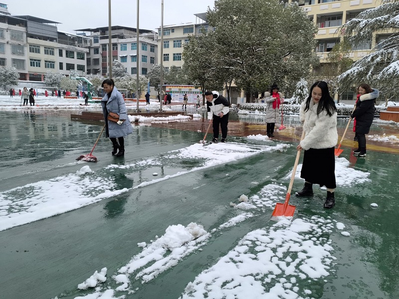 活动中,志愿者们拿着铁锹、扫帚等劳动工具,分工协作、默契配合。大家不怕苦、不怕累,个个干劲十足,不畏严寒、奋勇拼搏,充分发扬了“奉献、友爱、互助、进步”的志愿服务精神,劳动的热情和团结的力量获得了过往路人及沿街商户们的纷纷点赞。经过一上午的辛勤努力,大家清扫了学校操场、校园周边居民小区及清江路主街道路面的积雪,为全校师生和周边市民开辟了一条洋溢着暖心温情的通畅之路。在学校关工委主任的带领下,学校班子成员还清扫了教学楼门前走廊的冰块,清理了学校食堂屋檐及车栅上面的积雪,消除了校园里的安全隐患,为学校师生创造一个安全的工作学习环境。